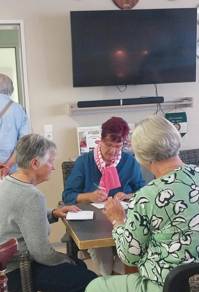 Am 26. August 2025 fuhren wir nach Fockbek, denn die LandFrauen Rendsburg und Umgebung haben uns zu einem geselligen Nachmittag dorthin eingeladen. Nach einem reichhaltigen wohlschmeckenden Grillbuffet teilten wir uns in Gruppen auf, um die unterschiedlichen Schießarten kennenzulernen, z. B. mit dem Blasrohr auf Übungsscheiben „pusten“, mit Frisbyscheiben einen Korb treffen, Luftgewehrschießen und Würfeln haben wir uns konzentriert und auf lustige Weise den Nachmittag mit den Fockbeker LandFrauen vertrieben und wurden sogar noch mit netten Preisen von Sigrid Aust verwöhnt.